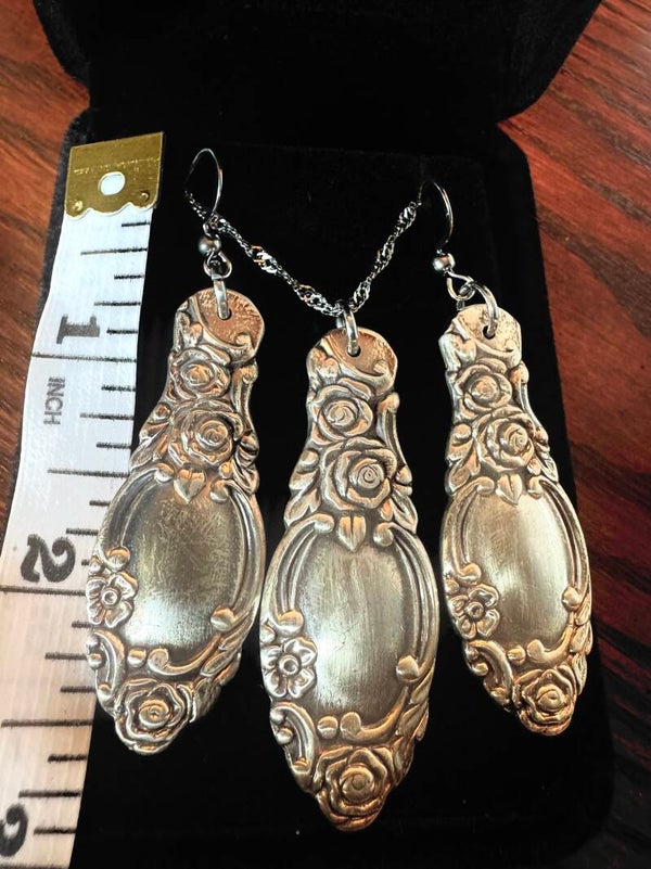 Stylish and elegant Ballad necklace with matching earring set! Jewelry is carefully crafted and boasts a 20 inch stainless steel chain with a lobster clasp. The matching earring hooks are stainless steel as well.